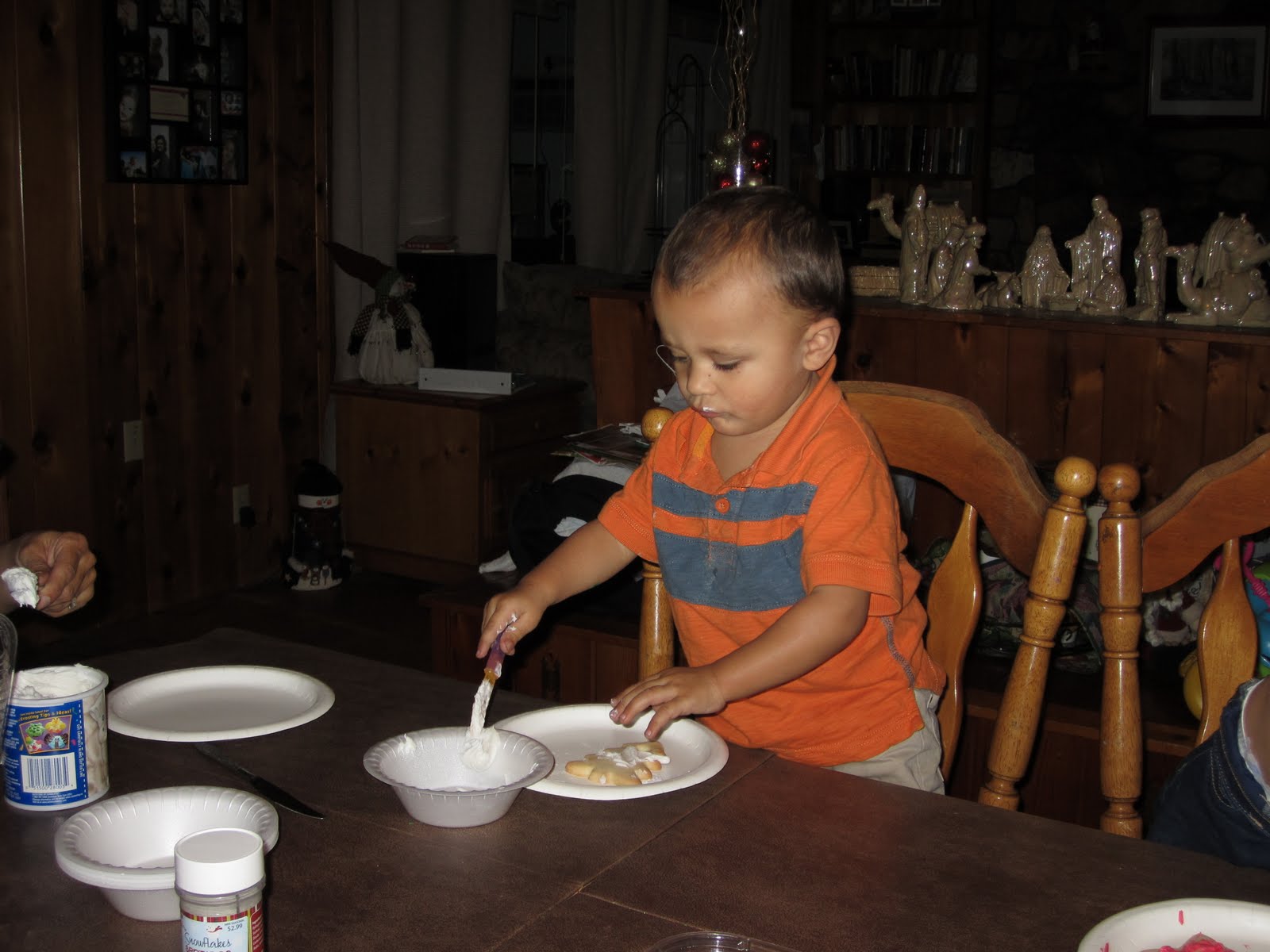 Yesterday we celebrated Christmas with Lex, Erika, and the girls because they are leaving for Idaho on Friday. All the older grandkids got to make a gingerbread village with Nama and then they decorated cookies and ate them all up! Unfortunately, I didn't think to take my camera out until after the gingerbread village was decorated, but the kids did it all my themselves, we just put the houses together. Later on that night we read The Story of Christ's Birth and then Santa dropped off a bunch of presents for the girls! We all had so much fun!